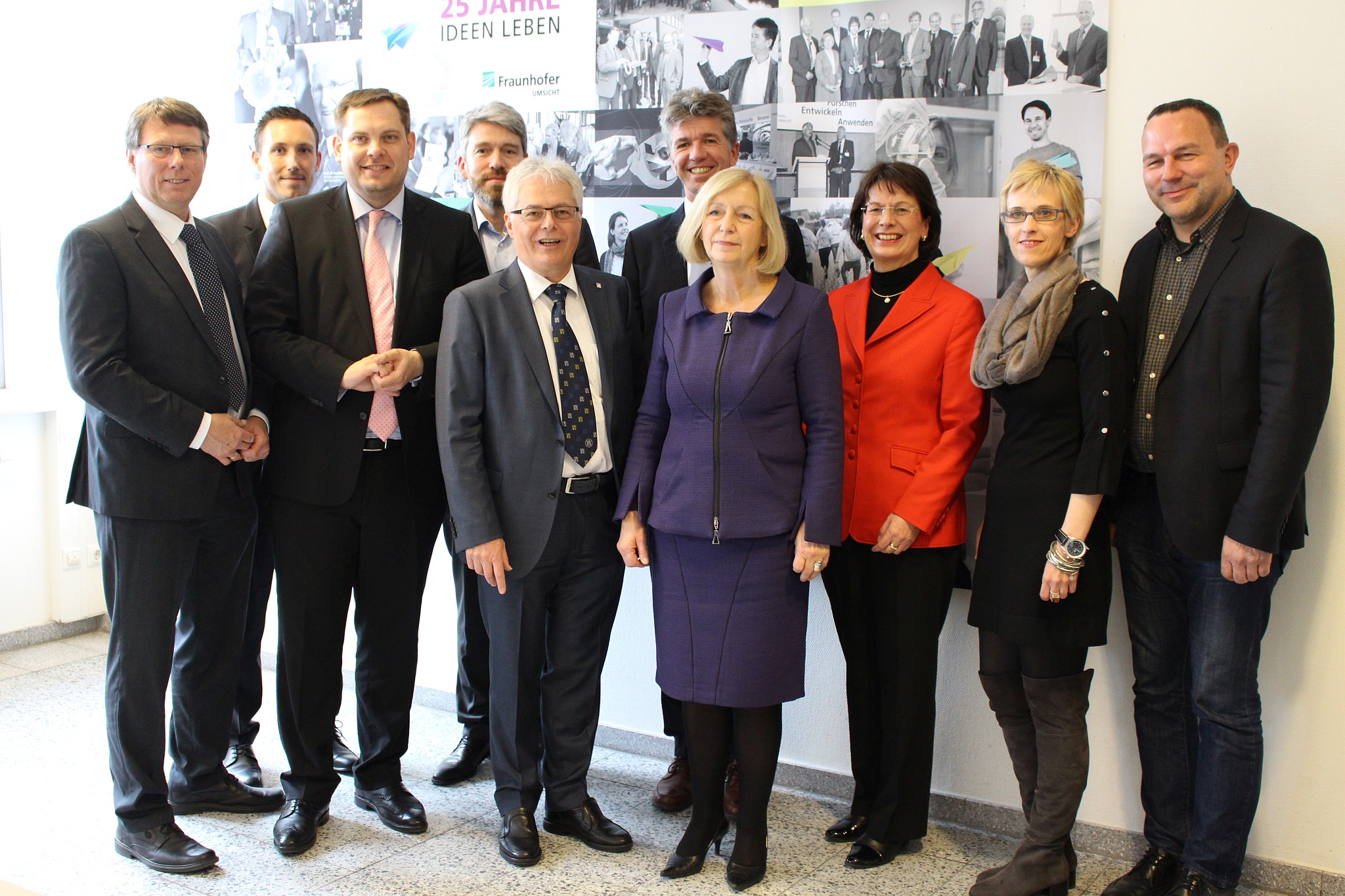 90 Minuten dauerte die Visite von Bundesbildungsministerin Prof. Johanna Wanka (CDU) beim Fraunhofer Institut Umsicht an der Osterfelder Straße. Es waren 90 mit Informationen vollgepackte Minuten, weil Institutsleiter Prof. Eckhard Weidner und seine Mitarbeiter die Zeit nutzten, die Bundesministerin über die Aktivitäten von Umsicht möglichst umfassend zu unterrichten. So ging es von der Stromspeicherung für Häuser der Fraunhofer-Unternehmensausgründung „Volterion“ bis hin zur Abfallwirtschaftshilfe für Kuwait.