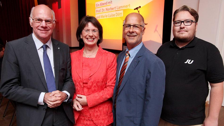 Dass den Dinslakenern nicht nur das Vergnügen zuteil wurde, in Professor Lammert eine scharfsinnige, bedachtsame Person zu empfangen sondern auch die Ehre hatten, in dem Bundestagspräsidenten den Inhaber des zweithöchsten Staatsamtes zu hören, ist maßgeblich Marie-Luise Dött zu verdanken. Sie vertritt den hiesigen Wahlkreis im Parlament; in der Bundestagsfraktion sind Marie-Luise Dött und Professor Dr. Lammert Sitznachbarn, ihr politisches Engagement verbindet sie seit vielen Jahren. Insoweit folgte Norbert Lammert gerne der Einladung, Marie-Luise Dött jetzt im Wahlkampf für den Wahlkreis 117 (Wesel/Oberhausen) zu unterstützen. Den Rahmen hatte der CDU-Stadtverband Dinslaken mit der Einladung zu einem „Abend mit Prof. Dr. Lammert und Marie-Luise Dött“ gestaltet, zu dem Rainer Hagenkötter als Vorsitzender willkommen hieß und Marie-Luise Dött das Grußwort sprach.