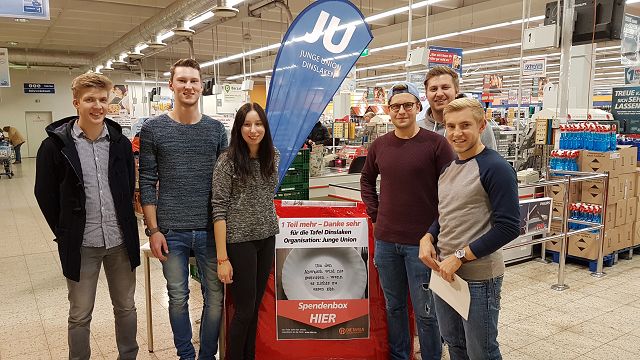 Die Junge Union Dinslaken (JU) hat am vergangenen Samstag Lebensmittel für die Dinslakener Tafel im real,- Markt Dinslaken gesammelt. Die Sammelaktion ist Teil einer Initiative der Jungen Union Kreis Wesel, die mit ihren Verbänden an verschiedenen Stellen im Kreis für die örtlichen Tafeln sammelt.