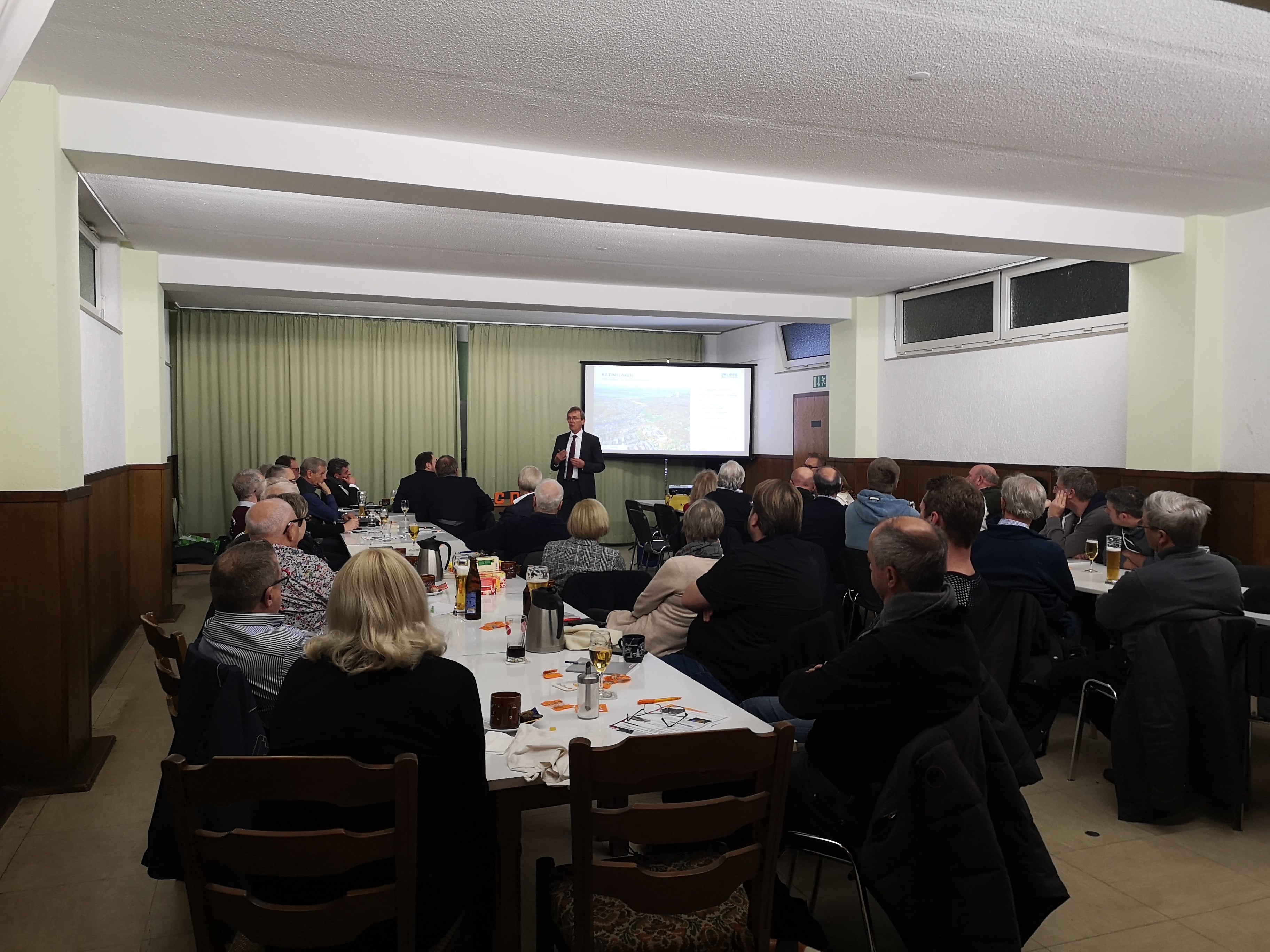 Es besteht Handlungsbedarf, es gibt aber keinen Grund zur Panik. Das war die Botschaft des Abends. Am vergangenen Mittwoch, den 20.11.2019 lud die CDU Eppinghoven-Hagenbruch zum "Themenabend: Wie geht es unserem Rotbach?" ein. Das Trockenfallen des Rotbachs in den Sommermonaten hatte Fragen über Zustand und Handlungsbedarf aufgeworfen. Dr. Emanuel Grün und Dr. Mario Sommerhäuser vom Lippeverband, beleuchteten die Thematik und gingen auf Fragen der Teilnehmer ein. Zu Beginn erläuterte Lippeverbands-Vorstandsmitglied Dr. Emanuel Grün, die aktuellen Projekte, Aufgaben und Zuständigkeiten des Verbandes. Anschließend referierte Dr. Mario Sommerhäuser (Abteilungsleiter des Flussgebietsmanagement) über die Entwicklung des Rotbachs und die Herausforderungen für das Gewässer, die die heißen Temperaturen der letzten beiden Sommer mit sich gebracht haben. Thomas Groß, Beisitzer im Vorstand der CDU Eppinghoven-Hagenbruch und stellvertretender Bürgermeister, merkt an: "Der Rotbach ist ein wichtiges Fließgewässer innerhalb Dinslakens und muss wieder mehr wertgeschätzt werden. Dies trifft vor allem auf die unerlaubte Ablagerung von Müll zu. Der geringe Niederschlag in den Sommermonaten ist zukünftig Herausforderung genug für so ein flaches Gewässer." Dr. Sommerhäuser machte darauf aufmerksam, dass die Einleitung von Wasser in den Rotbach zur Erhaltung des Wasserspiegels keine Alternative ist. Eine schlechte Qualität des Wassers würde die dort lebenden Tiere und das bestehende Ökosystem des Flusses gefährden. "Der Vortrag von Dr. Sommerhäuser zeigt, dass Lösungen zur Stärkung des Wasserkreislaufs im gesamten Stadtgebiet entwickelt werden müssen, um den Rotbach als Lebensraum für Tiere, als natürliche Klimaanlage und Naherholungsgebiet dauerhaft zu erhalten.", so Groß weiter.
